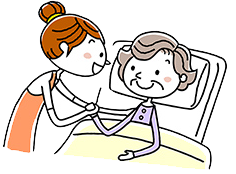 ベッドへの誘導、ベッドからの起き上がりの介助を行います。