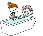 入浴(全身浴または部分浴)、清拭(身体を拭く)、洗髪などの介助を行います。