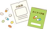 配剤された薬の確認、服薬のお手伝い、服薬の確認を行います。